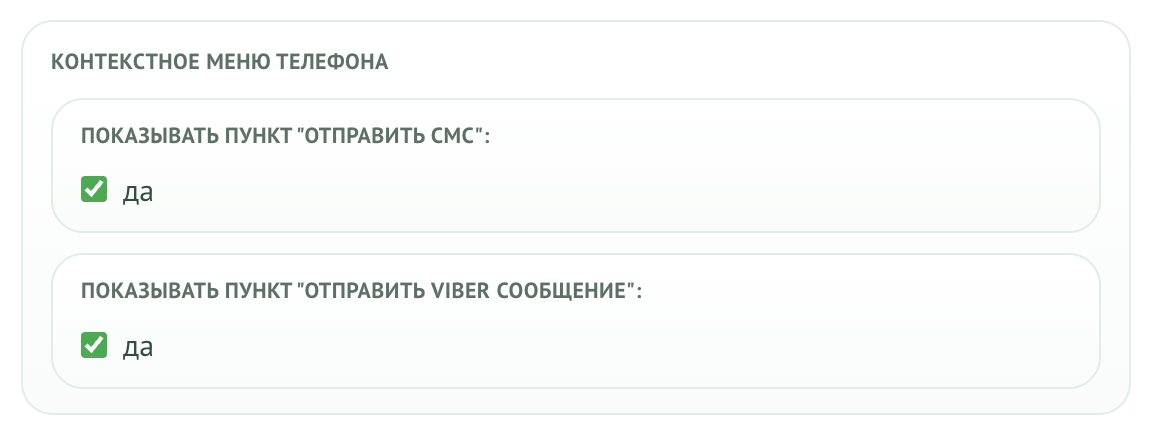 Теперь вы сами управляете тем, какие действия доступны при работе с контактами. В настройках можно включать или отключать пункты «Отправить SMS» и «Отправить Viber сообщение» в контекстном меню номера.
