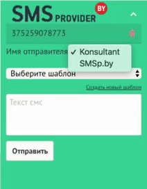 Имена отправителей можно добавить в вашем личном кабинете сервиса SMSp.by, которые далее будут доступны для выбора в виде имени для отправления сообщения.