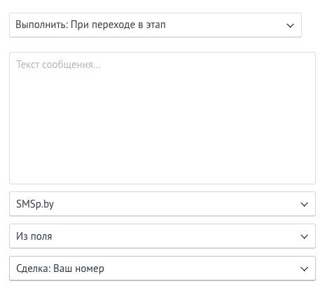 В цифровой воронке так-же появилась возможность отправлять смс на номер телефона из кастомного поля сделок и основного контакта.